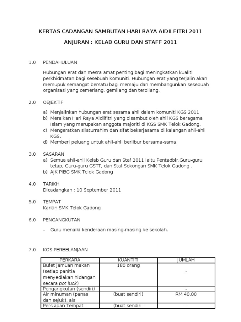 Contoh Kertas Kerja Jamuan Hari Raya Pdf